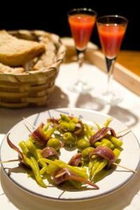 guindellas, pan y bloody mary